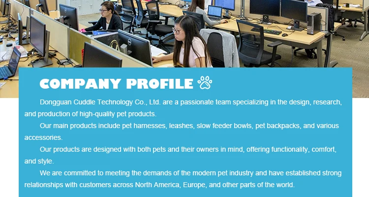 Cuddle creates high-quality pet supplies with innovation and style. Backed by a modern factory, we ensure strict quality control, offer OEM/ODM services, and prioritize eco-friendly solutions for pets and the environment.