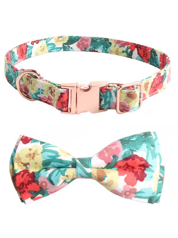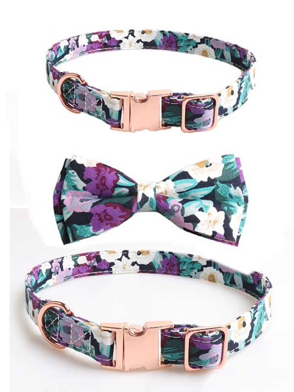 Dog Collar Polyester Ribbon Cat Collar Rose Gold Bow Collar